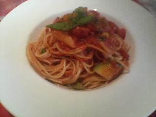新富の「il DESTINO」で イタリアンのお店です。ちょっとオシャレなお店です。 お昼しか行ってないけど人気店のようです。昼から予約席がありました。 菜園風トマトパスタ(1000円):★★★☆☆ うまかった!普通にうまかった。 前菜、パスタ、ドリンクのセットです。すごいトマトが濃かったです。